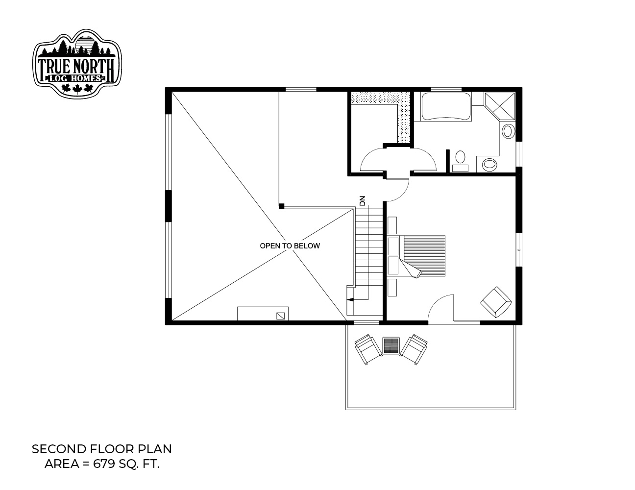 The Aspen III embodies everything you think when you see a traditional chalet-style log home. Walking up to the door you’re immediately greeted by a large wrap around deck and a number of windows. The main floor plan presents as a large open concept design. As you enter, the kitchen welcomes you by looking out onto the dining area and the main living space/great room. The main floor also has one bedroom and one bathroom. Up the stairs you’ll find a loft-style second floor with a reading area that overlooks the great room, the master suite and a large walk in closet. The Aspen III is really a head turner for any homeowner.