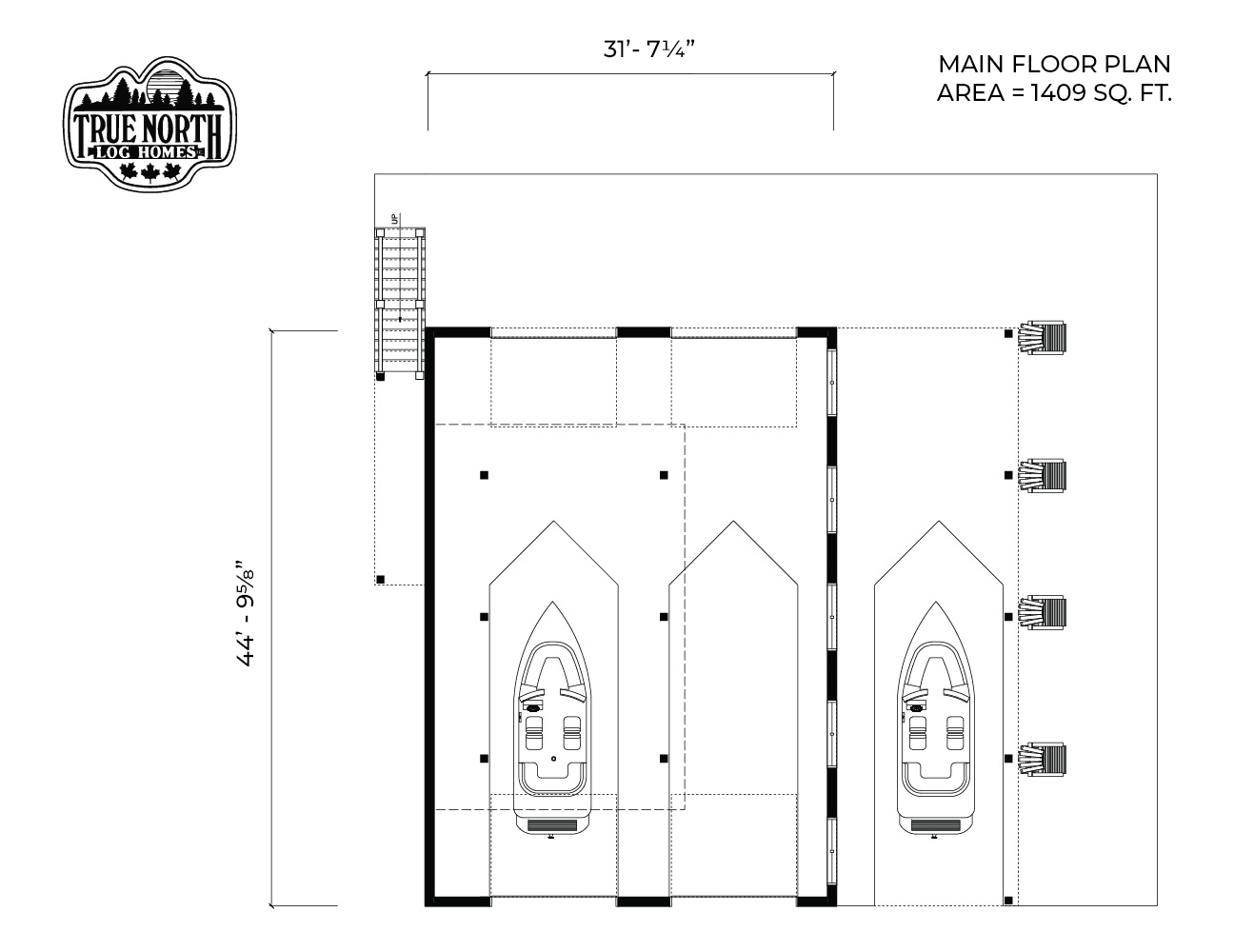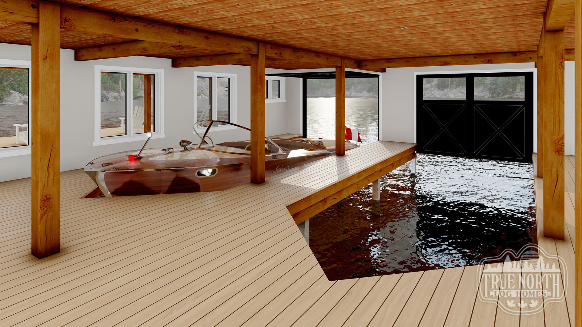 The Pine Island Boat House is a complimentary building to any contemporary cottage or getaway. On the main floor of the boathouse you can store your pleasure crafts and accessories. Up on the second floor you’ll be able to find an open concept living area complete with a lake-facing balcony and bathroom. This build is perfect to entertain guests all year long.