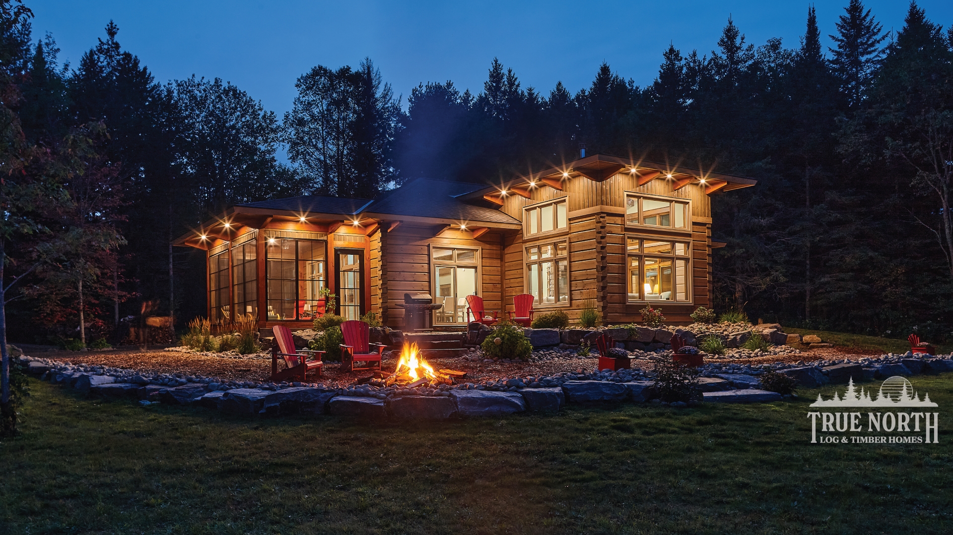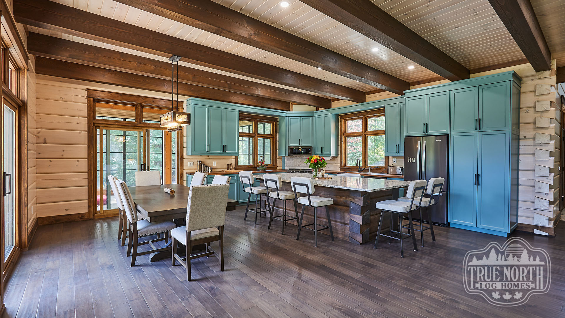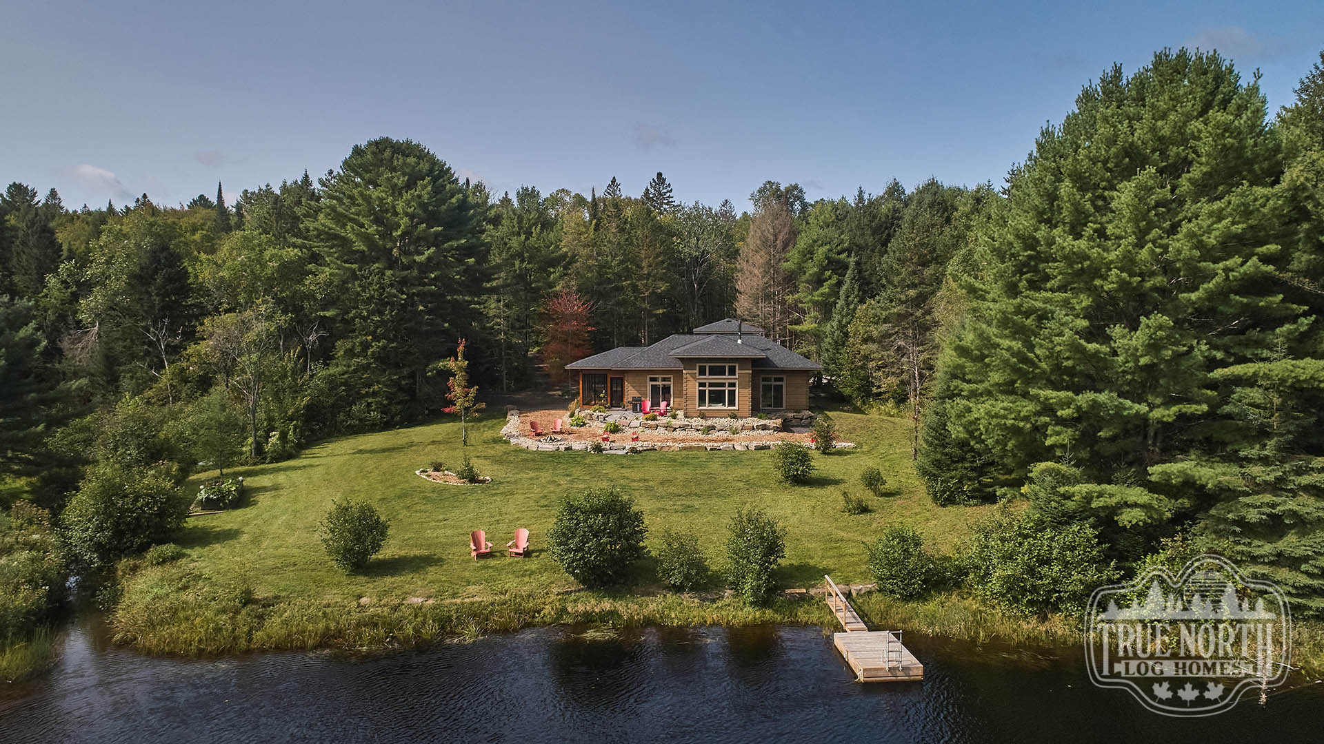 Building on the popularity of the Lakeview I and Lakeview II, we’re pleased to bring you another contemporary style design: the Riverview. Boasting 3 bedrooms, 2 baths, double car garage and screen porch, this modern log home design floods you with natural light in the double storey foyer upon entry. Straight ahead, the secondary bedrooms await. To the right, you’ll find a well-appointed kitchen and dining area which lead to the screened-in porch. The great room, with its 13’ ceilings and panoramic views, is the perfect spot to relax with friends and family. It’s easy to see why this efficient “L” shaped plan is quickly becoming a favorite.