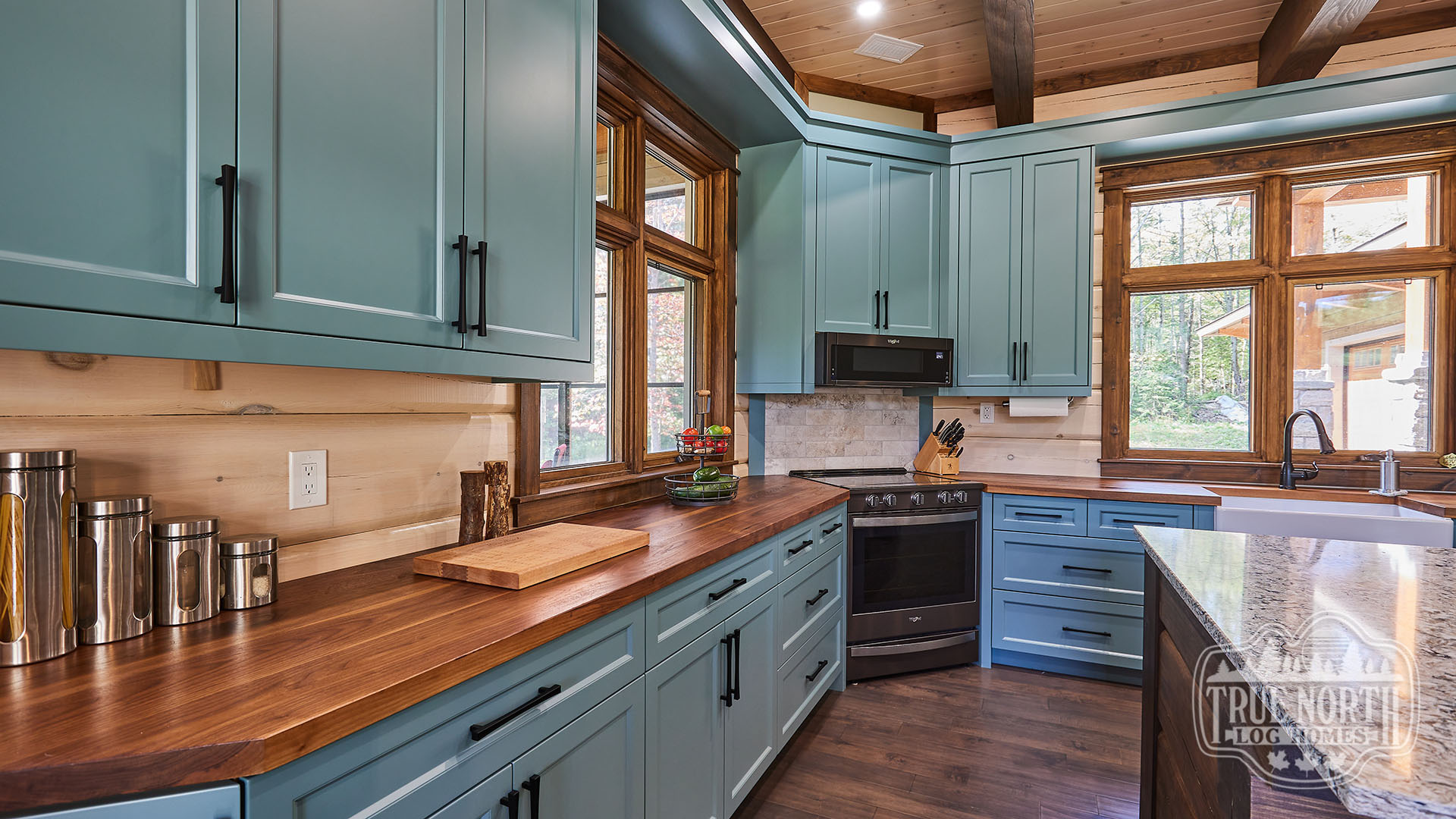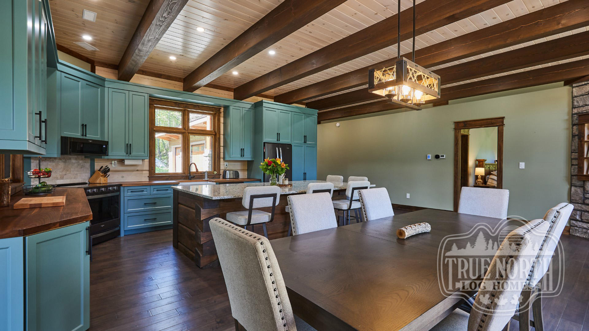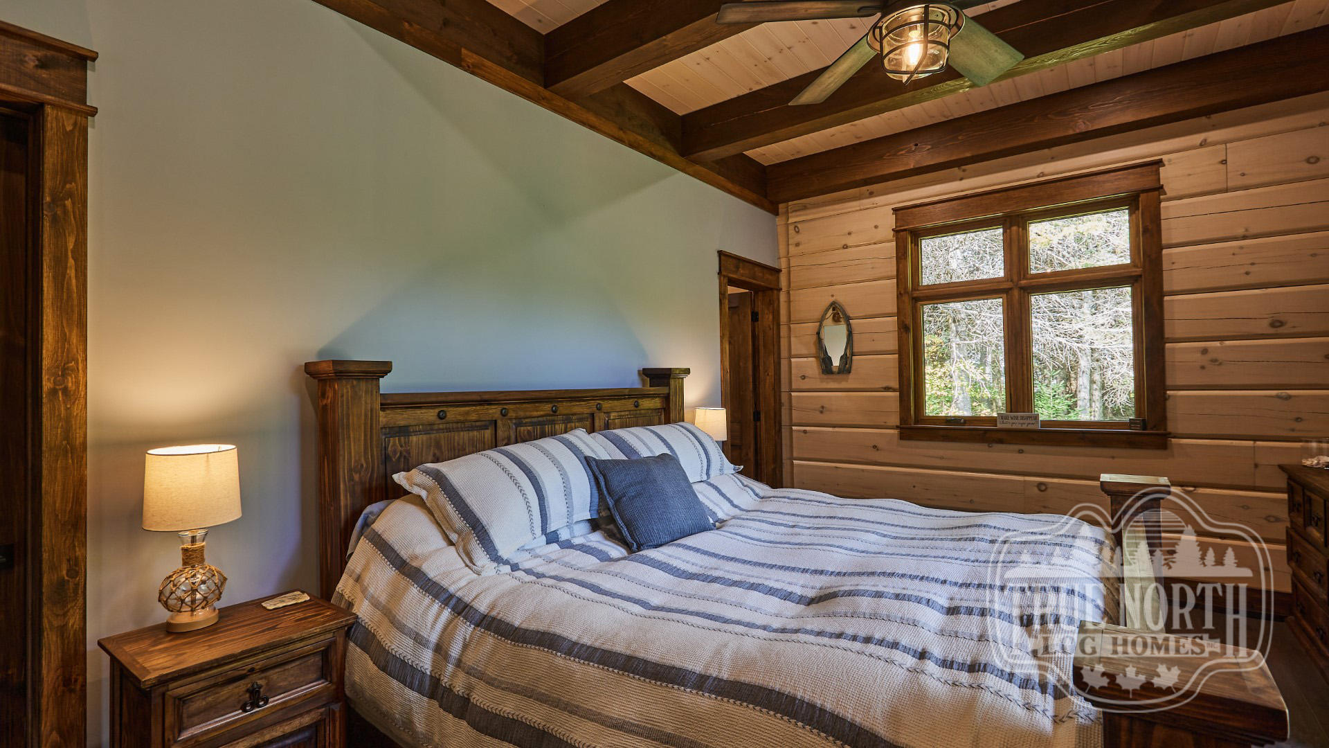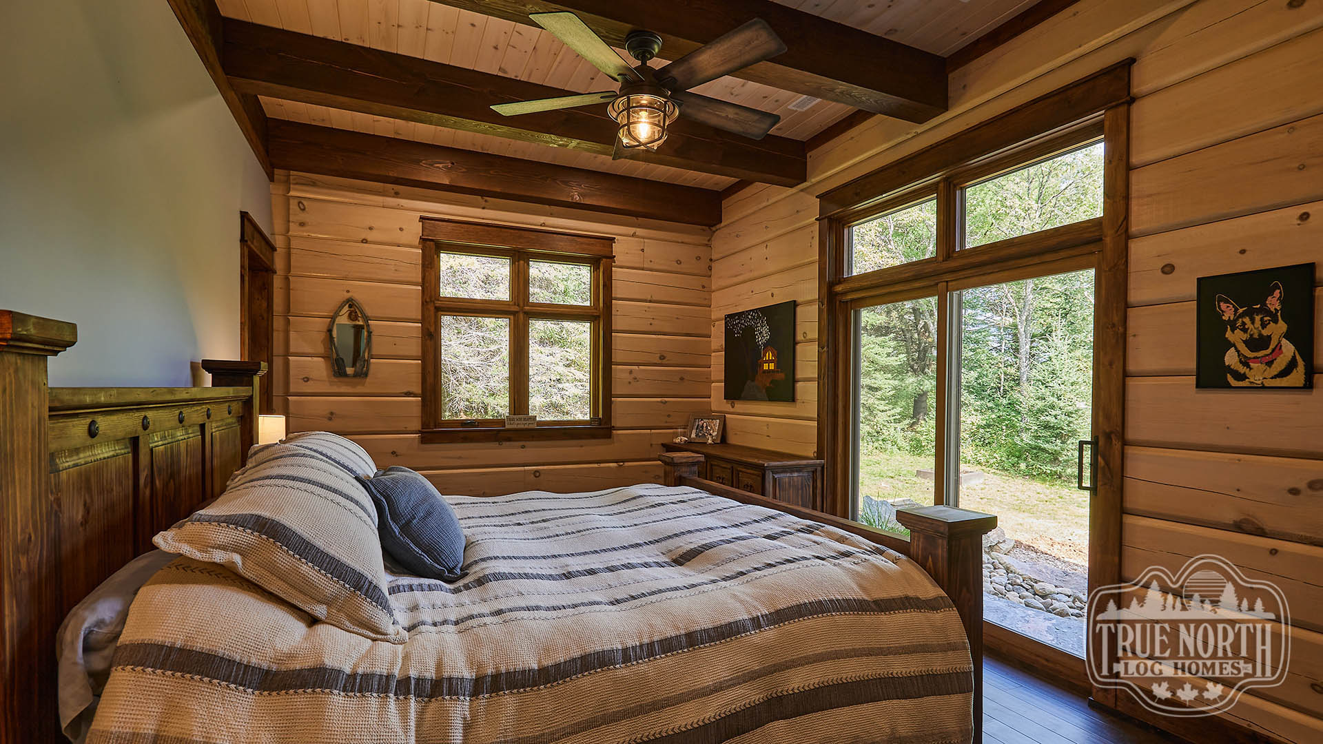 Building on the popularity of the Lakeview I and Lakeview II, we’re pleased to bring you another contemporary style design: the Riverview. Boasting 3 bedrooms, 2 baths, double car garage and screen porch, this modern log home design floods you with natural light in the double storey foyer upon entry. Straight ahead, the secondary bedrooms await. To the right, you’ll find a well-appointed kitchen and dining area which lead to the screened-in porch. The great room, with its 13’ ceilings and panoramic views, is the perfect spot to relax with friends and family. It’s easy to see why this efficient “L” shaped plan is quickly becoming a favorite.