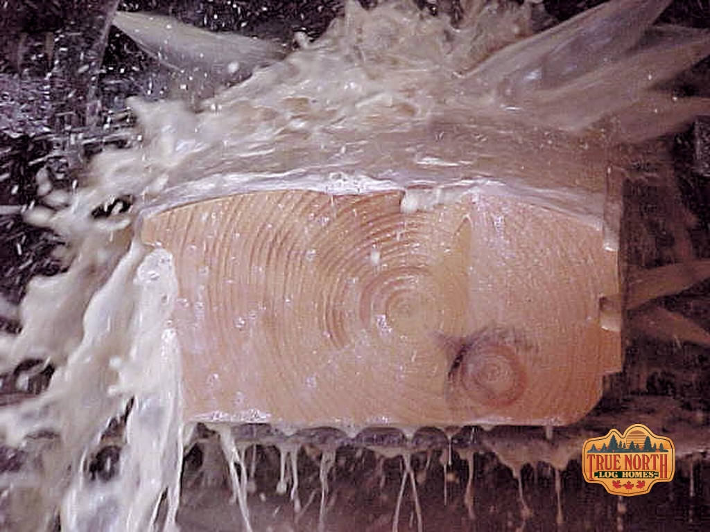 - True North Log Homes is the first log home company in the world to provide a factory-applied primer stain. We apply the primer to all four sides of your logs which protects against airborne fungus, mildew and UV damage during on-site construction. True North Log Homes also offers fully pre-stained packages manufactured in a factory-controlled environment by computerized equipment.